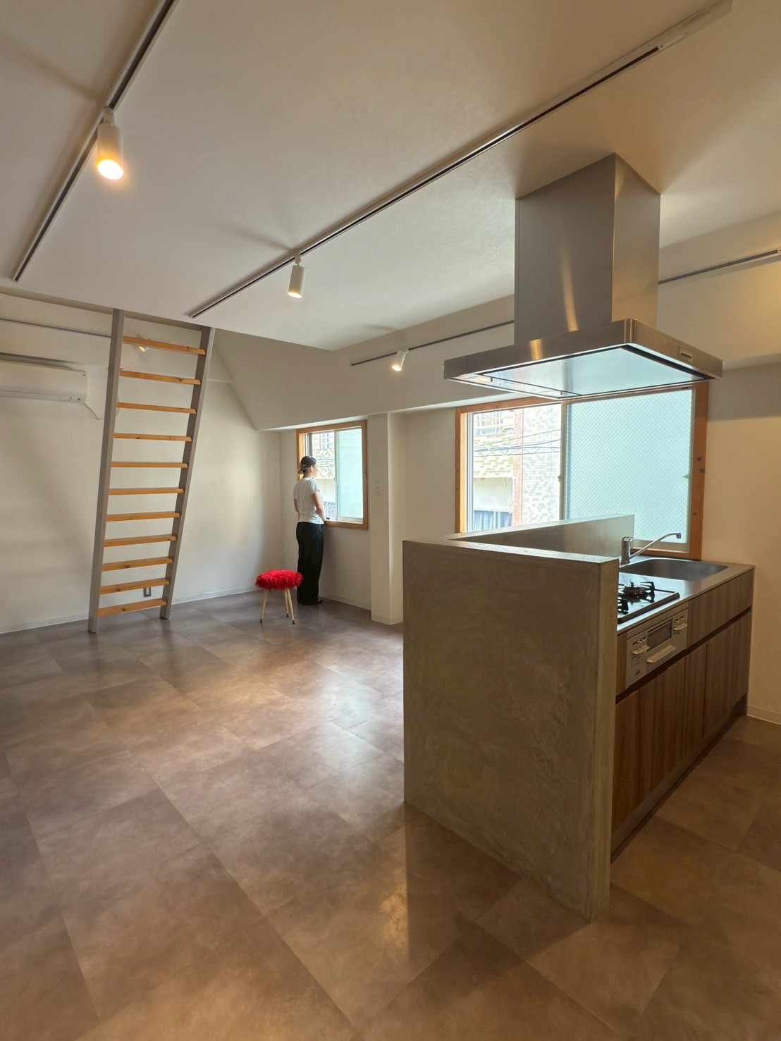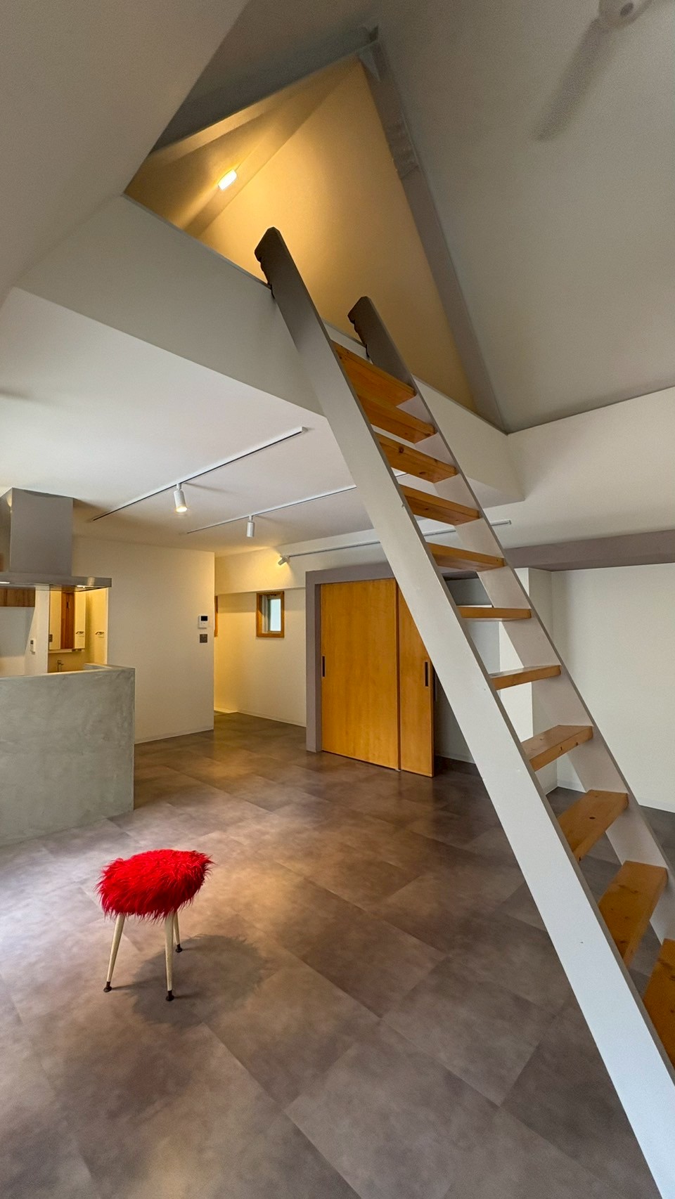 室内は約45㎡+ロフト約30㎡の、奥行きある立体構成で、